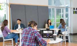 Elija entre tres valores de campo visual para encuadrar el video perfectamente. Para un encuadre de cabeza-hombros, elija 65 grados; para grupos más grandes o para abarcar más espacio de la sala, utilice 78 o 90 grados.