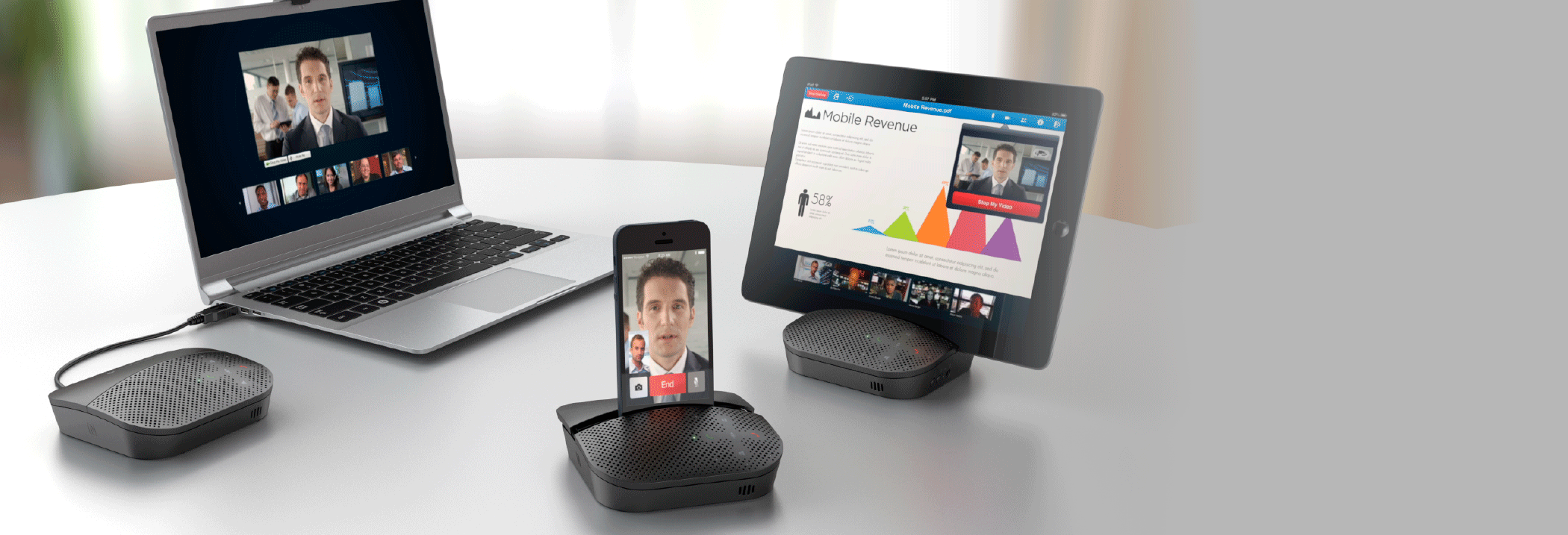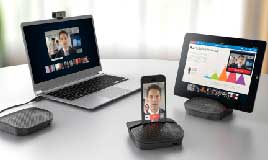 Configure en segundos su celular, tabla o PC al P710E y mejore el audio de los asistentes a cualquier reunión.