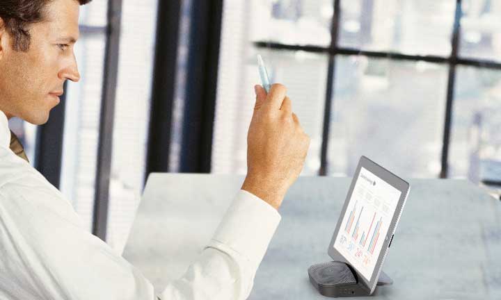 Acople su celular o tabla y mejore las condiciones de trabajo en especial cuando varias personas participan de la reunión.